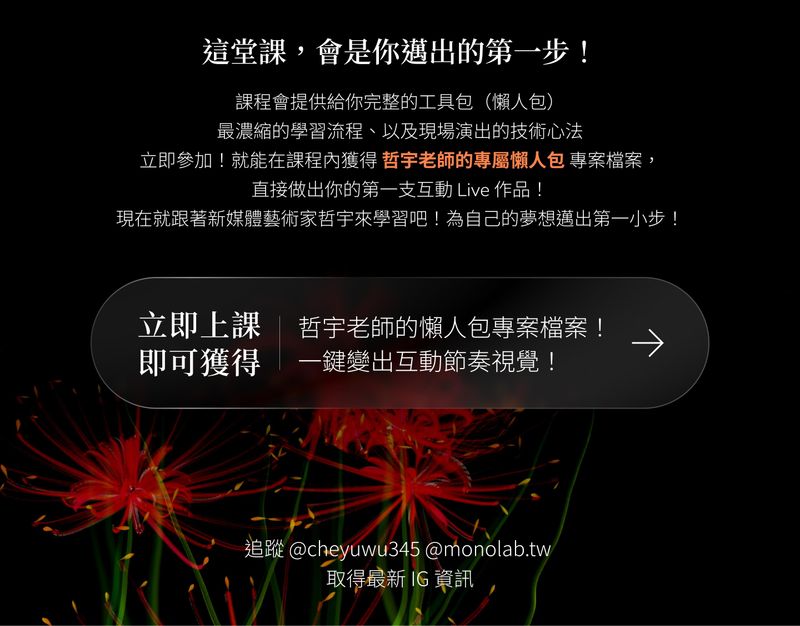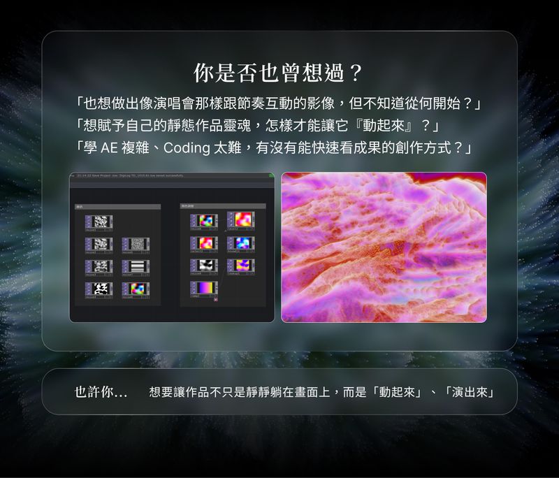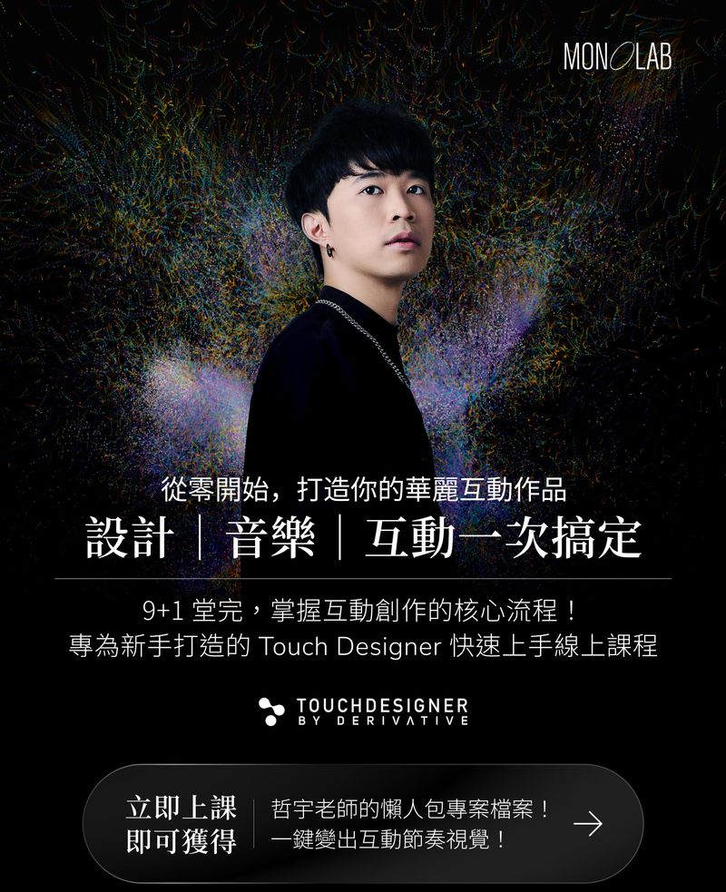 ![[線上課] TouchDesigner 入門必修課 | 創造怦然心動的互動表演](https://s.teachifycdn.com/image/width=660,quality=80/course/cover_photo/71494fc0-d957-48c1-bb2f-c586c19c309c/3445f5b6-4fc9-493e-a0d8-38874333a03b.jpg)